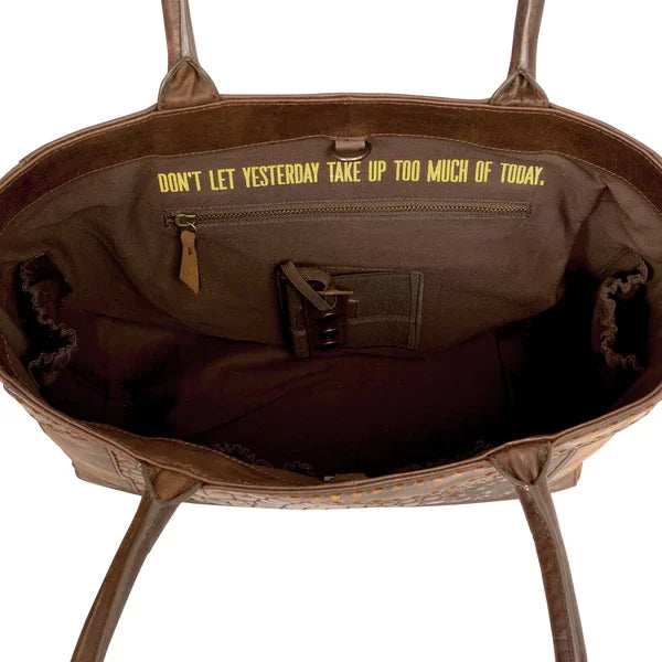 The Catalina Croc Tote is made with a full grain chestnut leather with croc-embossed full grain leather and suede stitching accents. This soft, glossy leather only gets more beautiful with use.