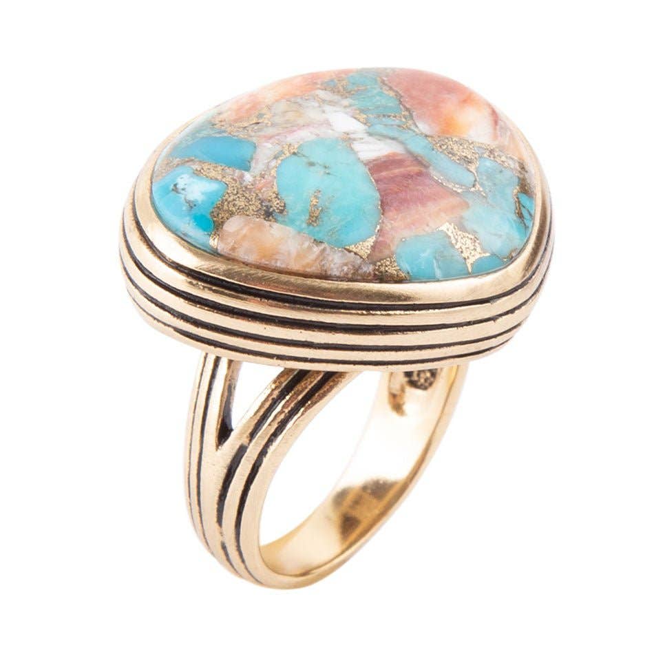 Turquoise Spiny Oyster Matrix Statement Ring from Barse