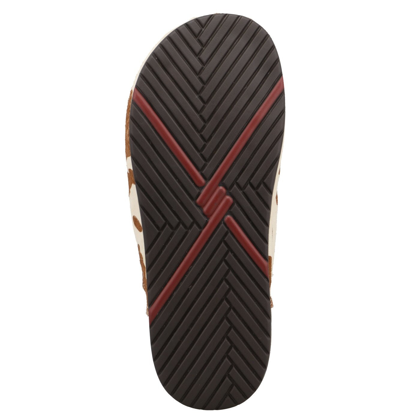 Hair On Mule from Twisted X Color: Black White Easy-wearing comfort for busy days. These slip-on mules feature genuine cowhide that gets better with age as well as a breathable mesh lining for all-day comfort. Ultra cushioned footbeds provide support whether you're running errands or relaxing at home. Slip into convenient, comfortable footwear that can liven up any outfit. Cowhide upper Mesh lining PU footbed/midsole PU outsole