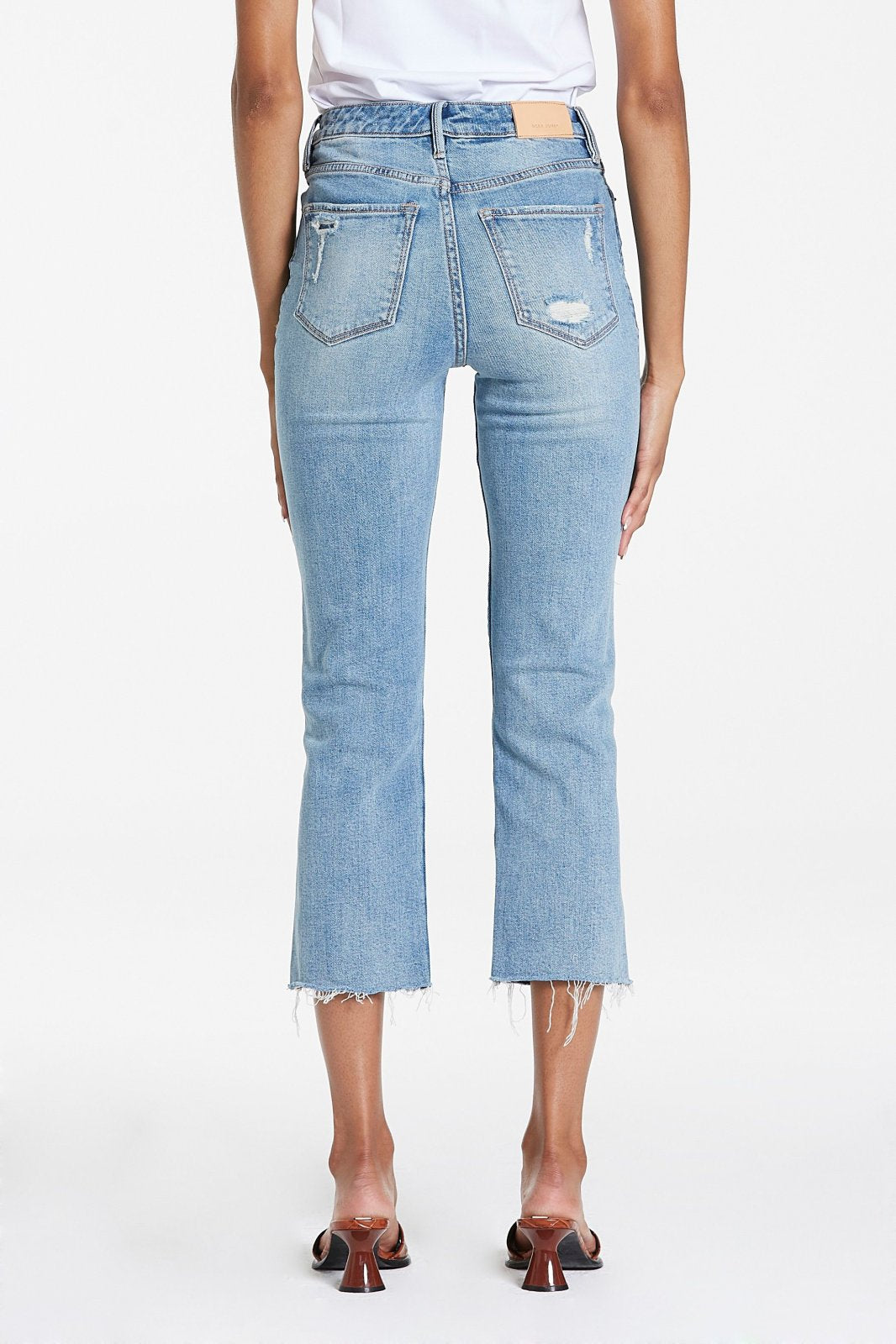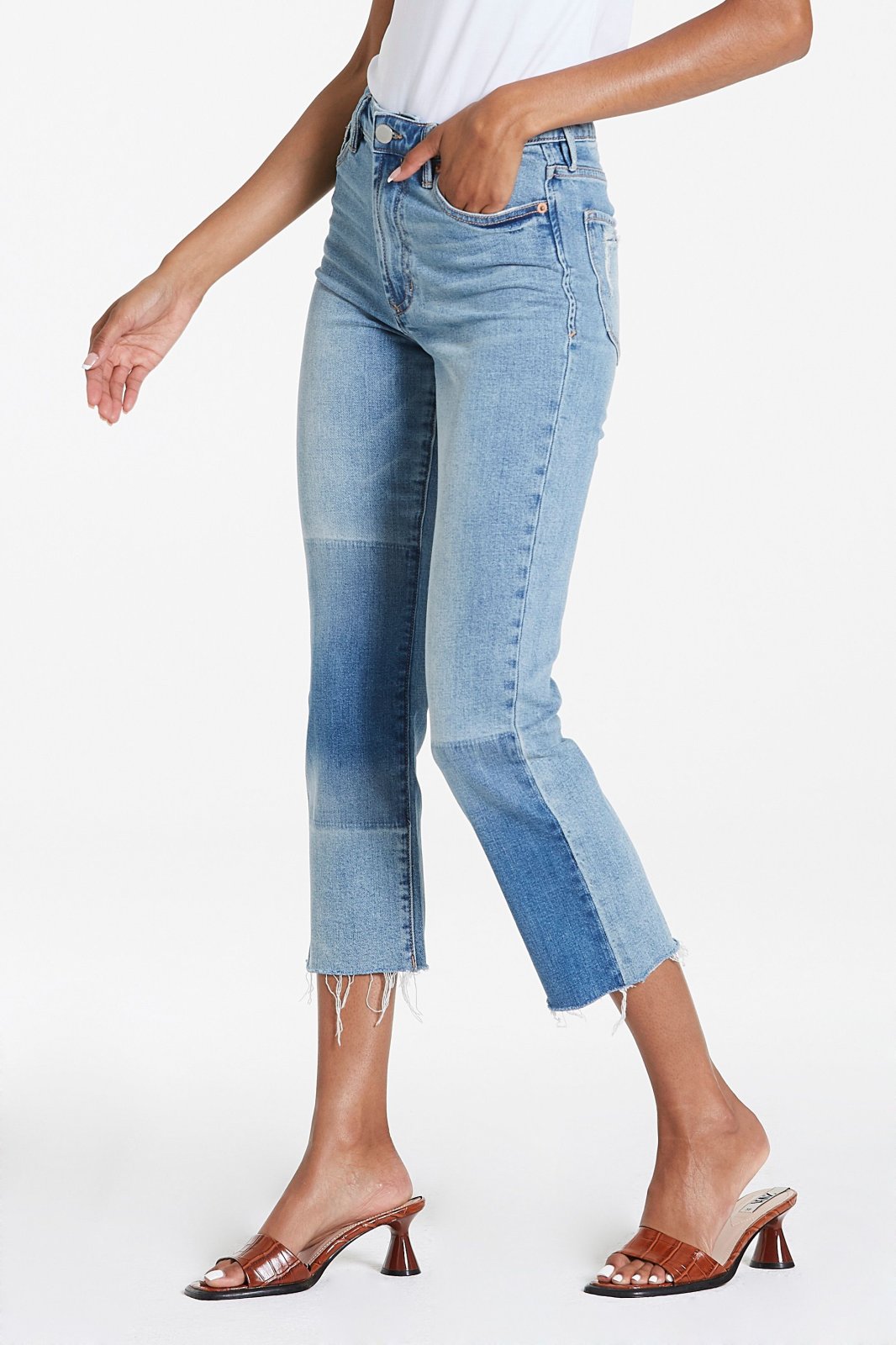 Super High Rise Cropped Multi Toned Denim with Cut Off Hem