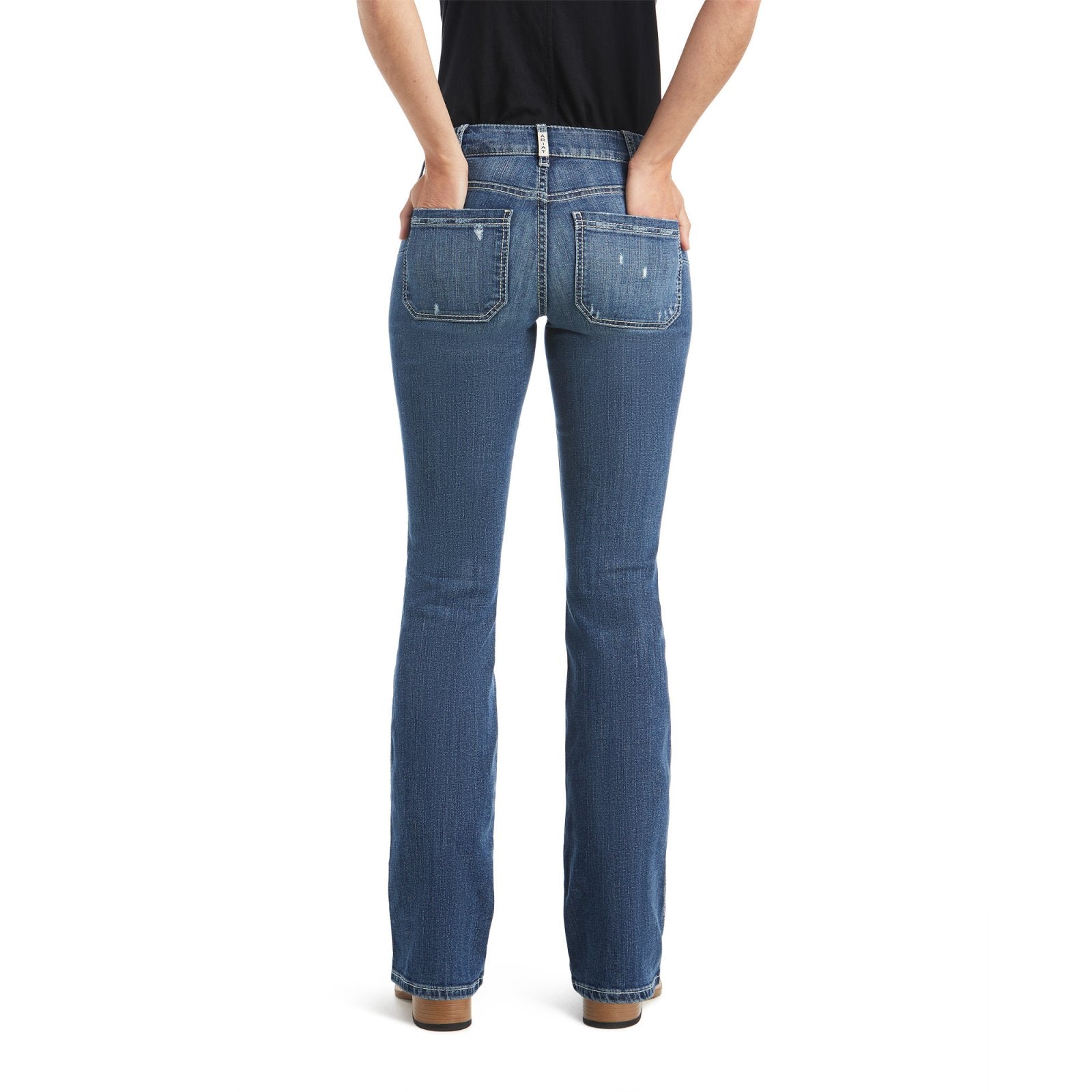 R.E.A.L. Perfect Rise Fit Boot Cut Nautalis from Ariat Color: Canadian Rider tested and thoughtfully engineered, this perfect rise, slim fitting jean features a boot-cut leg and performance stretch denim for added comfort that holds its shape and flatters yours. •Slim fitting through thigh •Perfect rise •Boot cut •9.75 oz performance stretch denim •Medium wash with hand sanding, whiskers and fashion back pocket •Waistband that won't gap •A seat that won't sag •95% cotton, 4% elasterall-P, 1% spandex •Machine wash cold