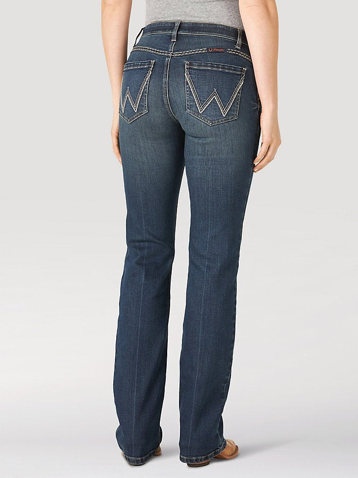 Low Rise, Bootcut, Angled Patch Watch Pocket, Two Front Scoop Pockets, Hip Pocket Embroidery, No Gap Elastic Waistband