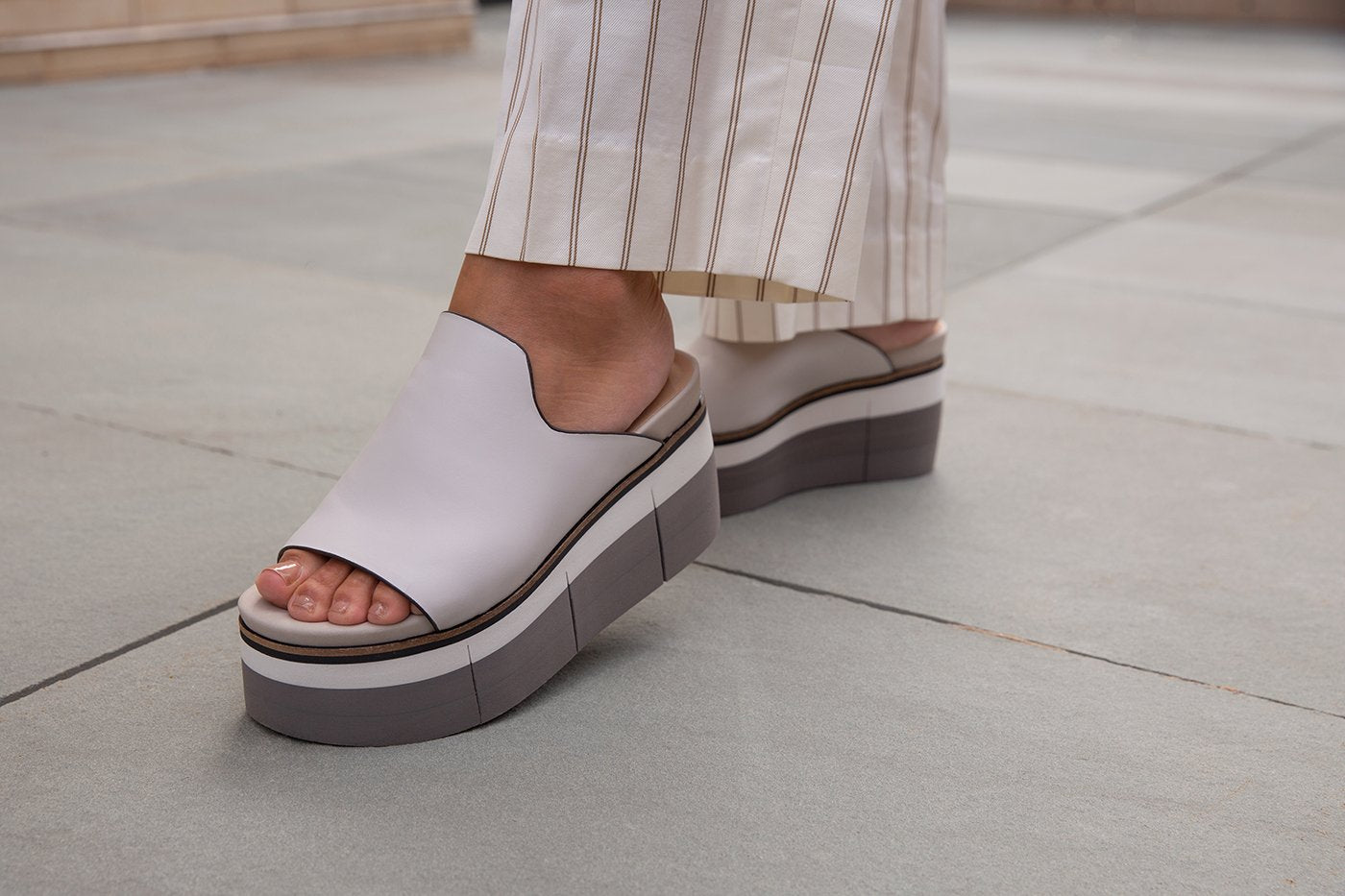 Slide in to the effortless direction of Flow in mist. This soft leather sandal features an uncomplicated silhouette, designed to fit simply into an affluent wardrobe of modern style. The multi-tone lightweight platform gives it a subtle athleisure twist while maintaining its enchanting boho style.