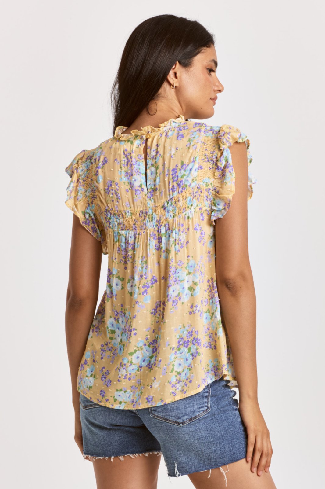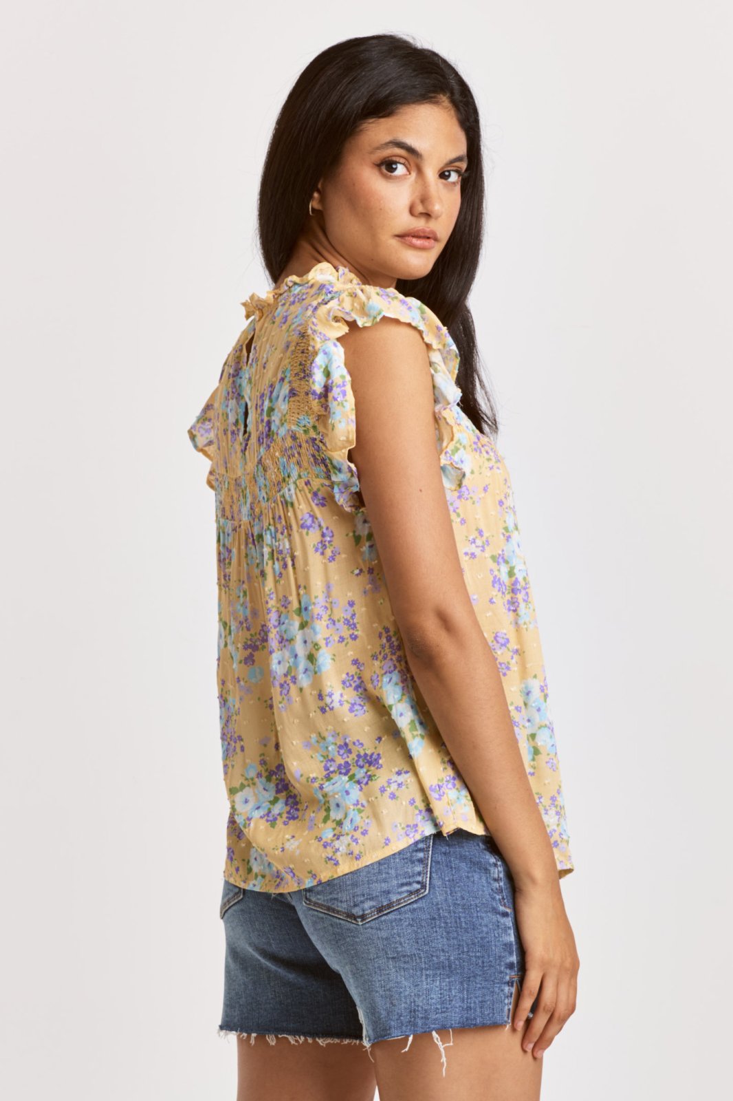 Smocked shoulder and yoke details
