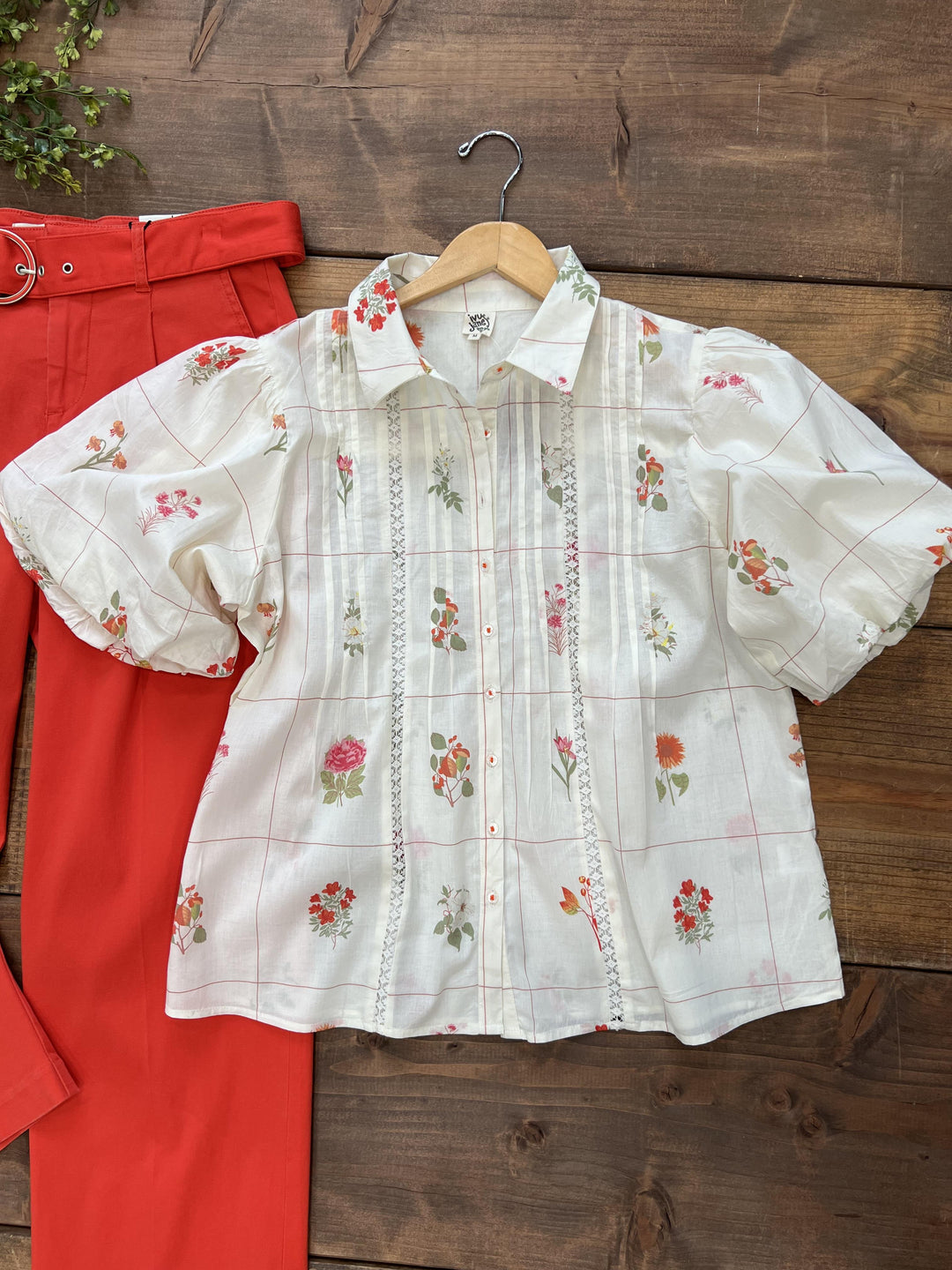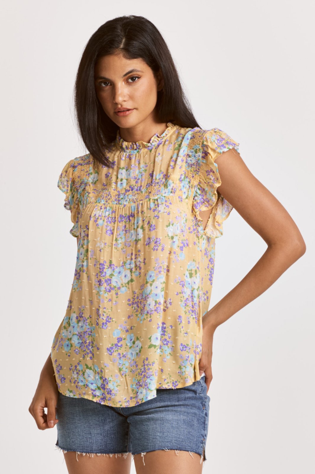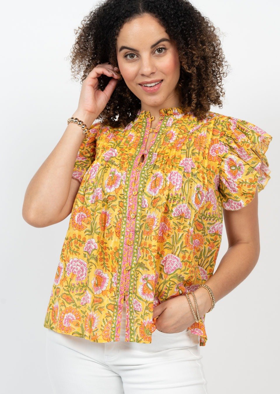Frilly Cap Sleeve Blouse with Combo Print from Tribal