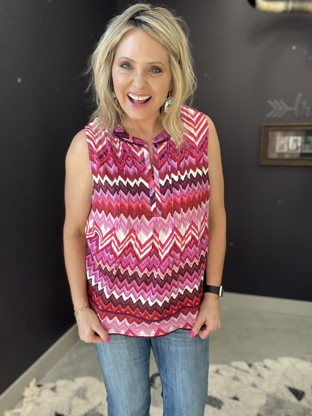 Printed Sleeveless Blouse with Side Ties from Charlie B