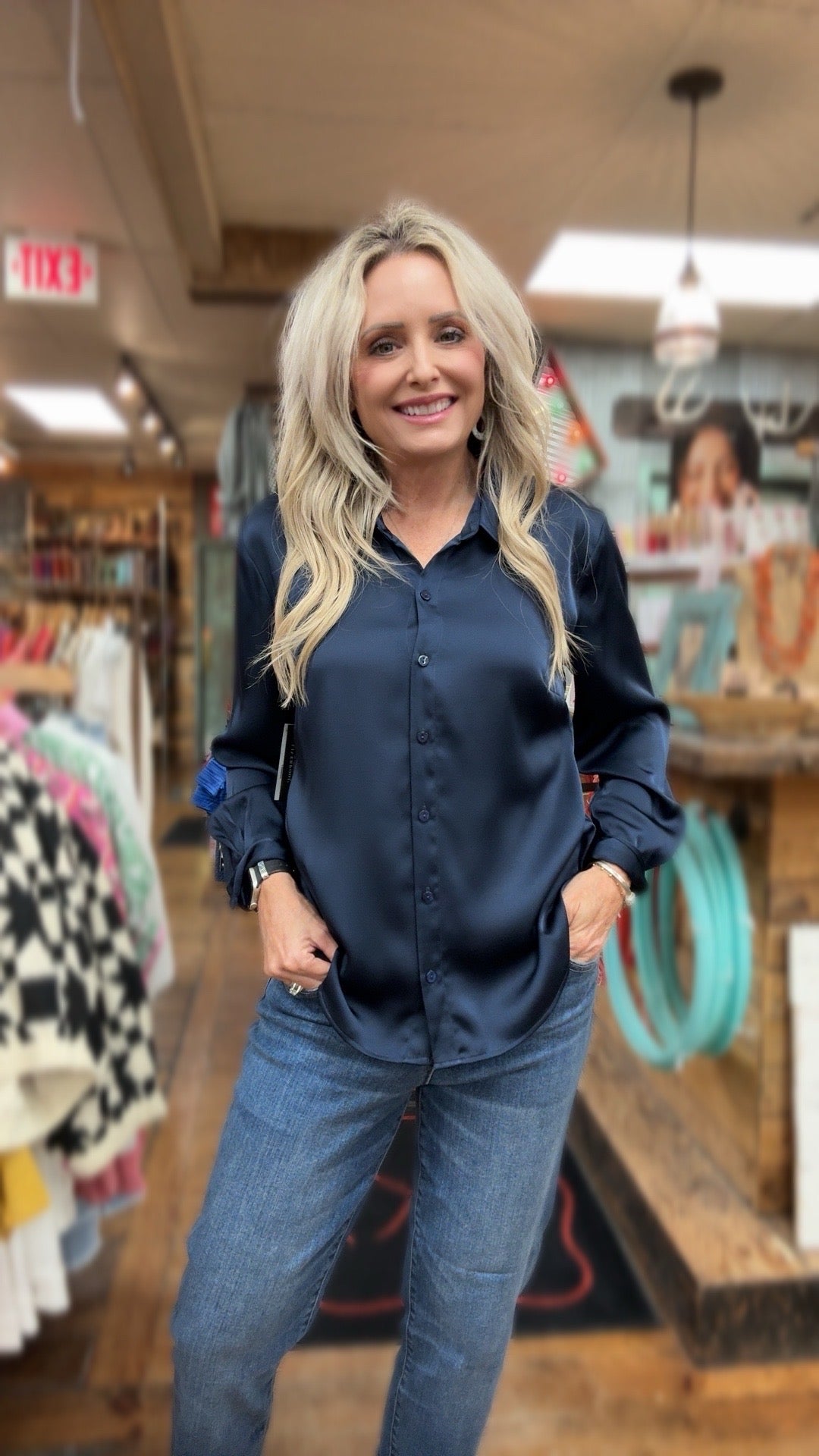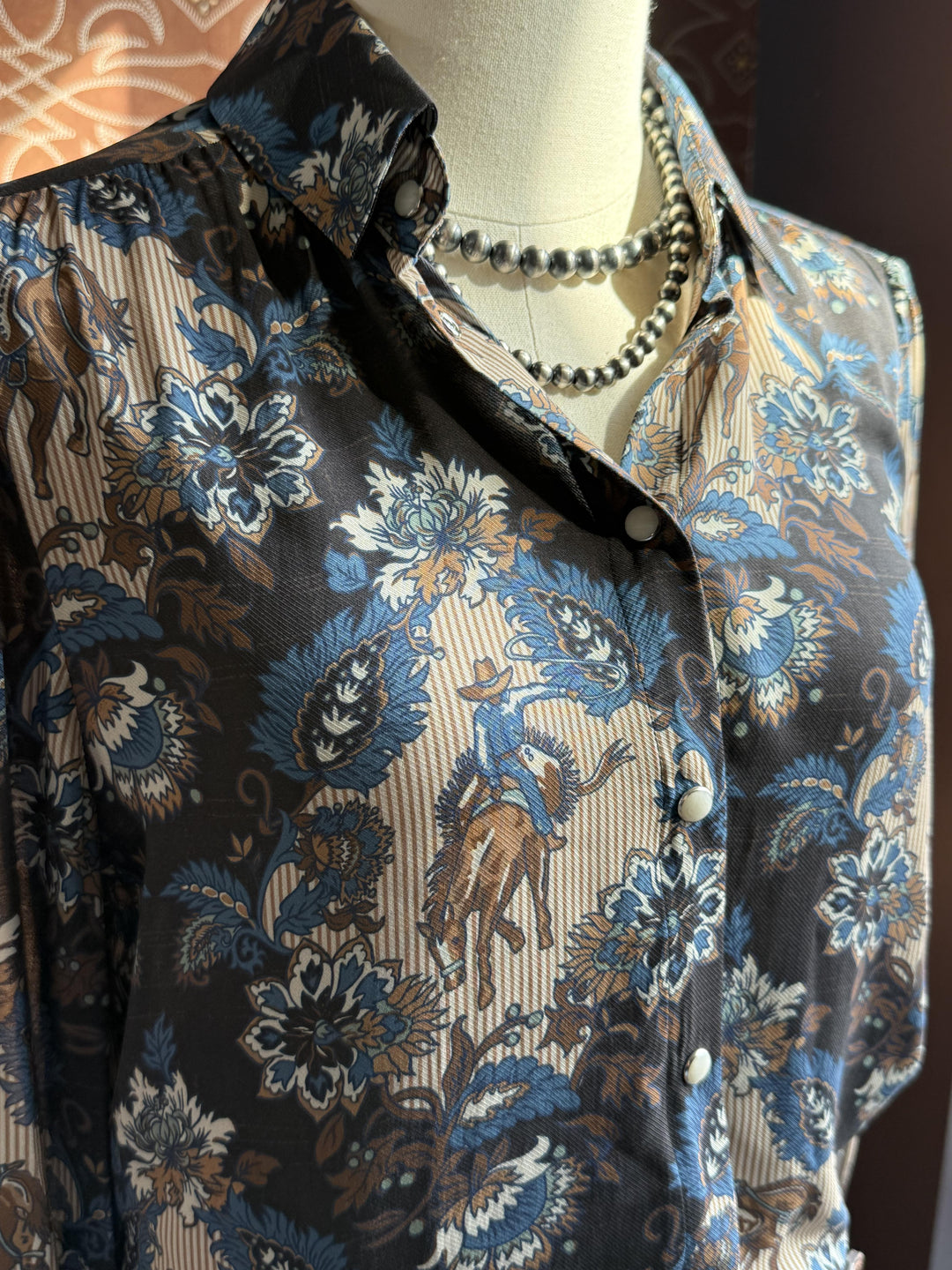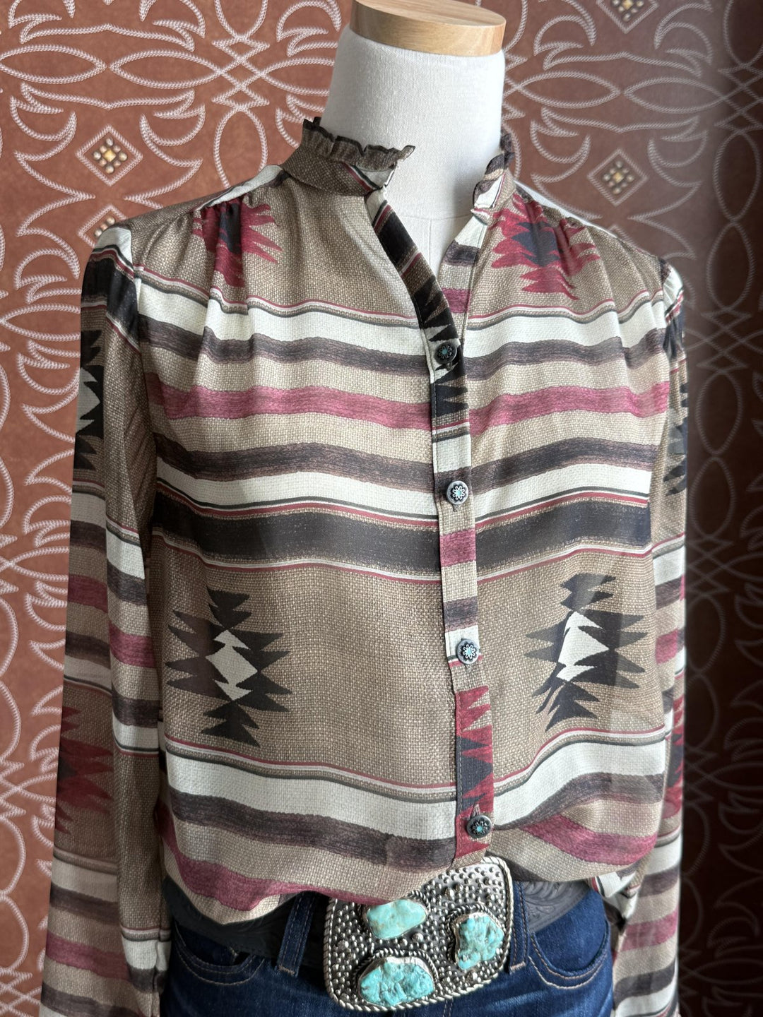Western Print Tie Front Top
