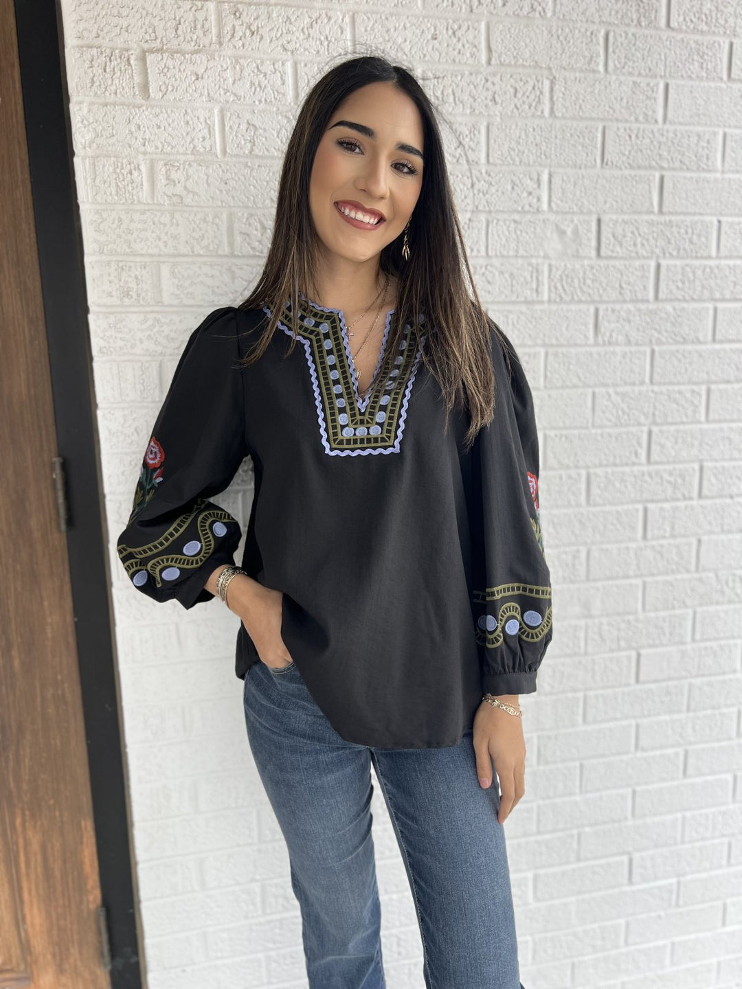 Embroidered Stitch Top