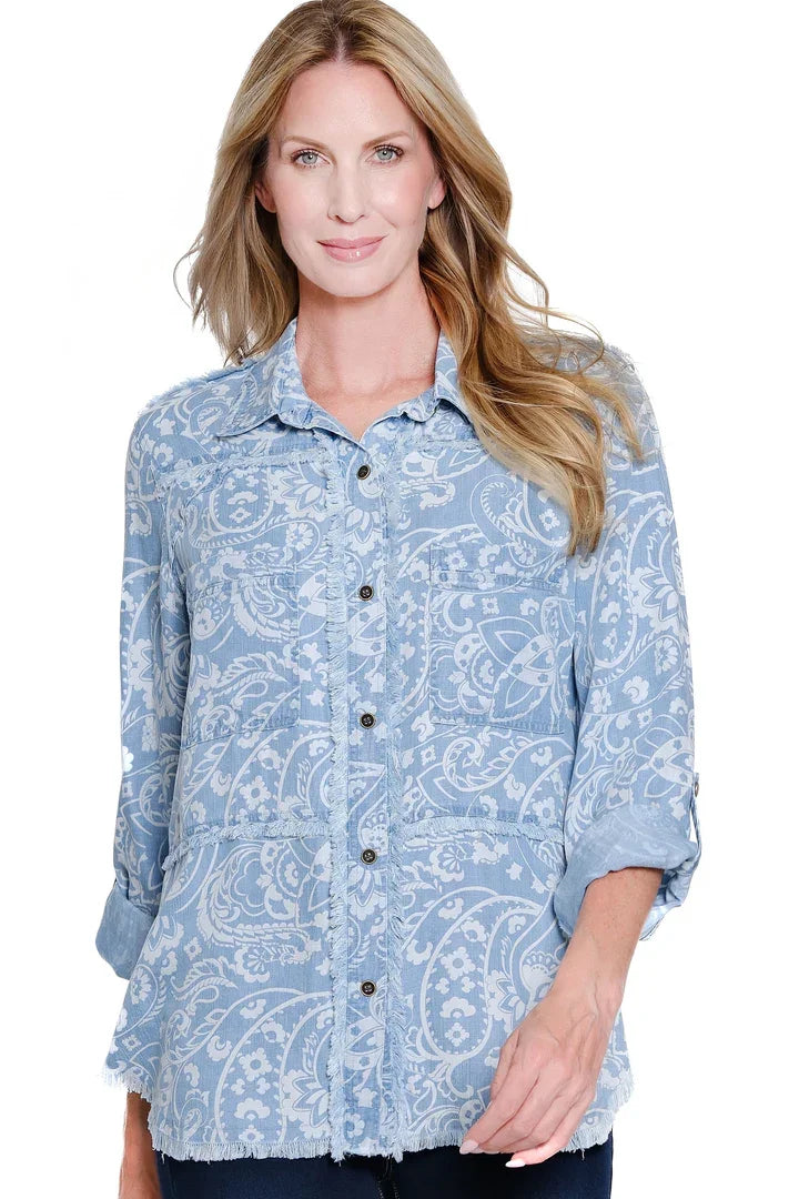 Turn Up 3/4 Sleeve Button Front Shirt from Mulitples