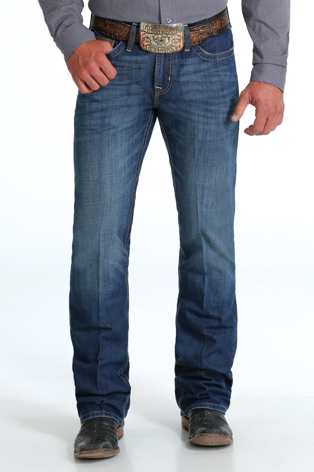 IAN gets the go-ahead run with its hard hitting medium stonewashed performance denim and fan favorite slim fit. Camel embroidery, hand sanding, whiskers, chevrons, knee starbursts and grinding clinch the win.