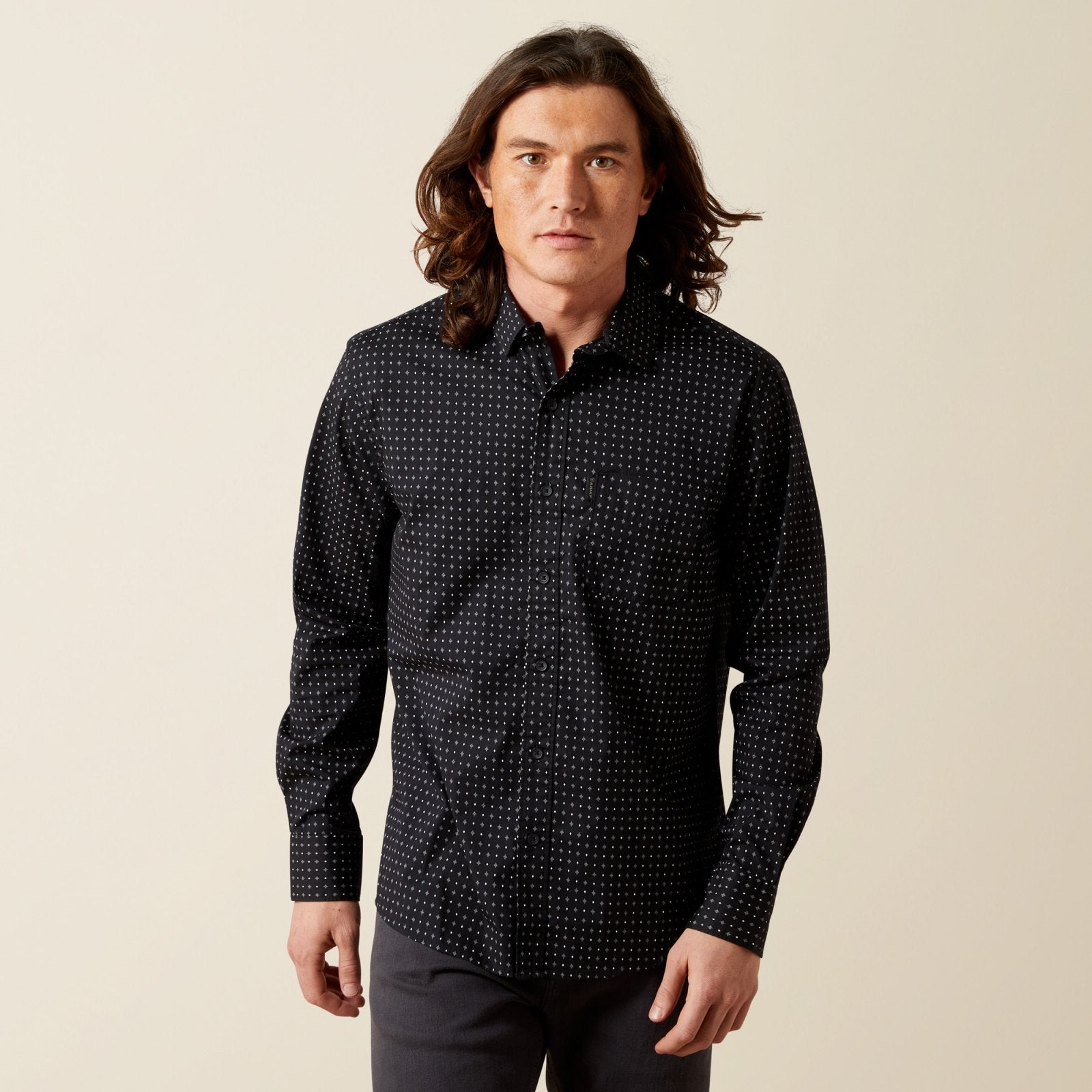 McClain Modern Fit Shirt from Ariat Color: Black Our casual shirts stand up to serious wear and look good doing it. Combining classic styling, rugged comfort and quality construction, they’re an all-day, everyday staple. A trend-right, tailored, slim fit with a slightly shorter hem that looks great untucked