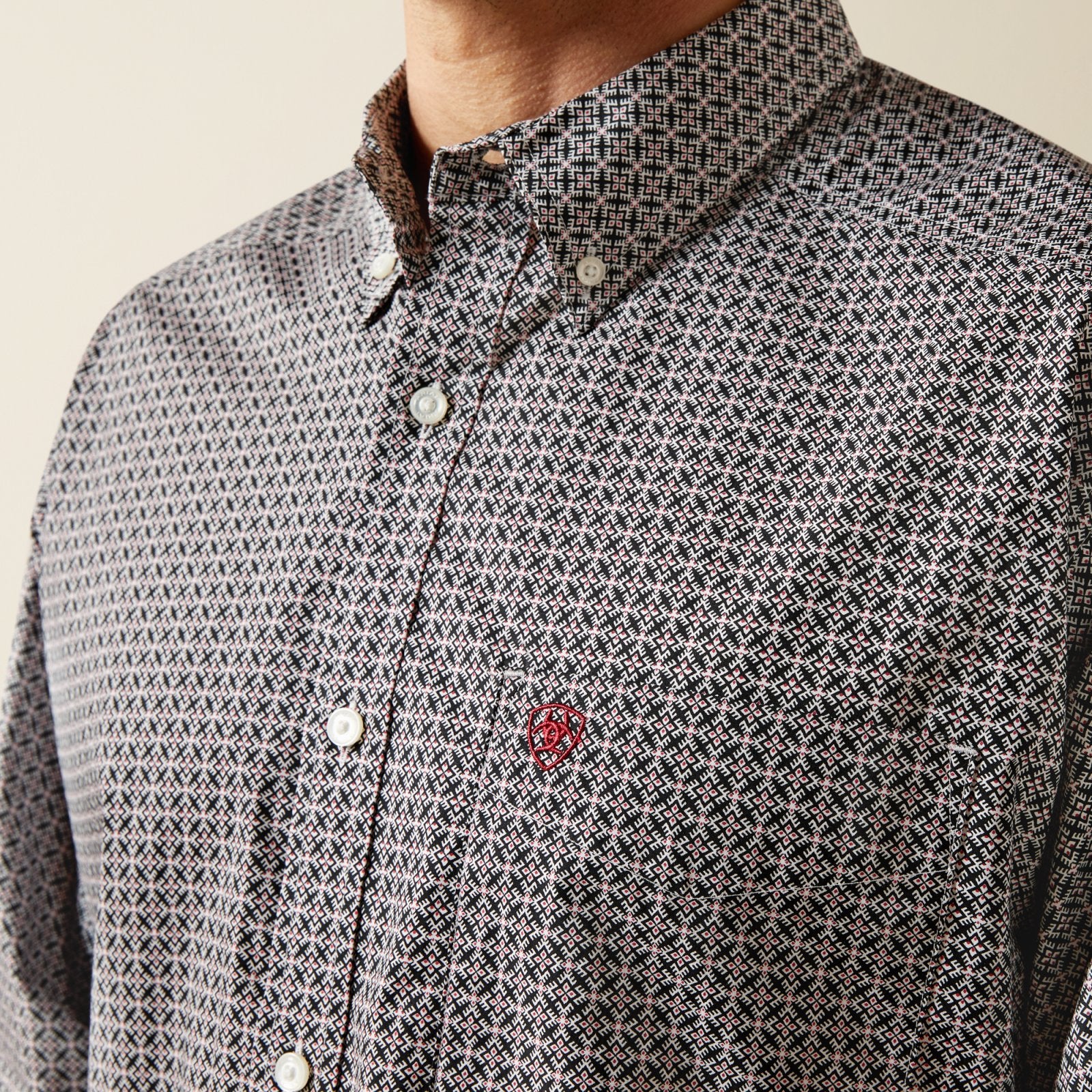 Tobias Classic Fit Shirt from Ariat Color: Black Our casual shirts stand up to serious wear and look good doing it. Combining classic styling, rugged comfort and quality construction, they’re an all-day, everyday staple. Our most generous fit, with extra length in the body and sleeves that keeps you covered while you're on the move Button-front closure with buttoned collar points Ariat branding details Adjustable cuffs with extended button detail make it easier to roll up your sleeves Hidden pen slot in left pocket 100% Cotton