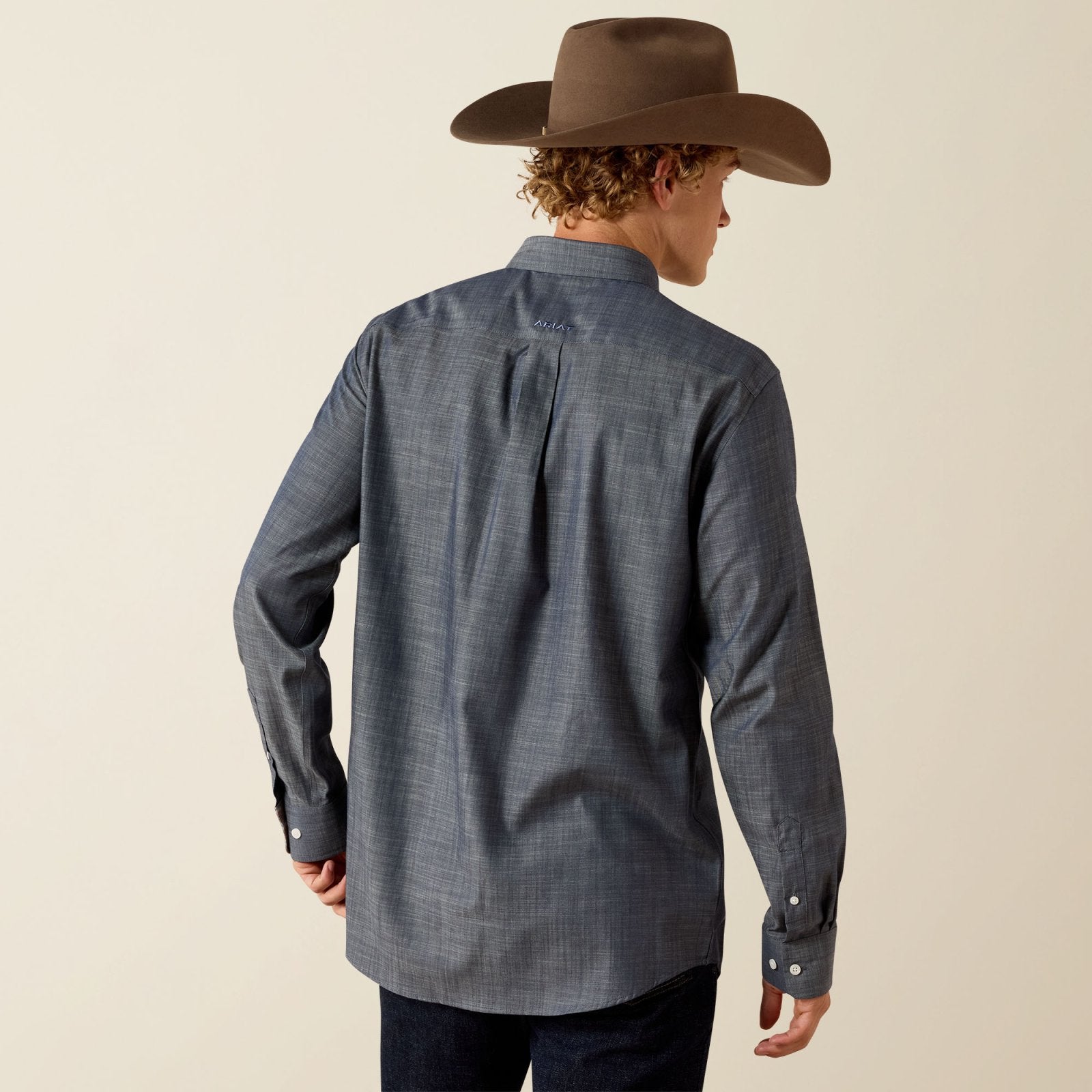 Wrinkle Free Solid Fitted Shirt from Ariat Color: Chambray Blue