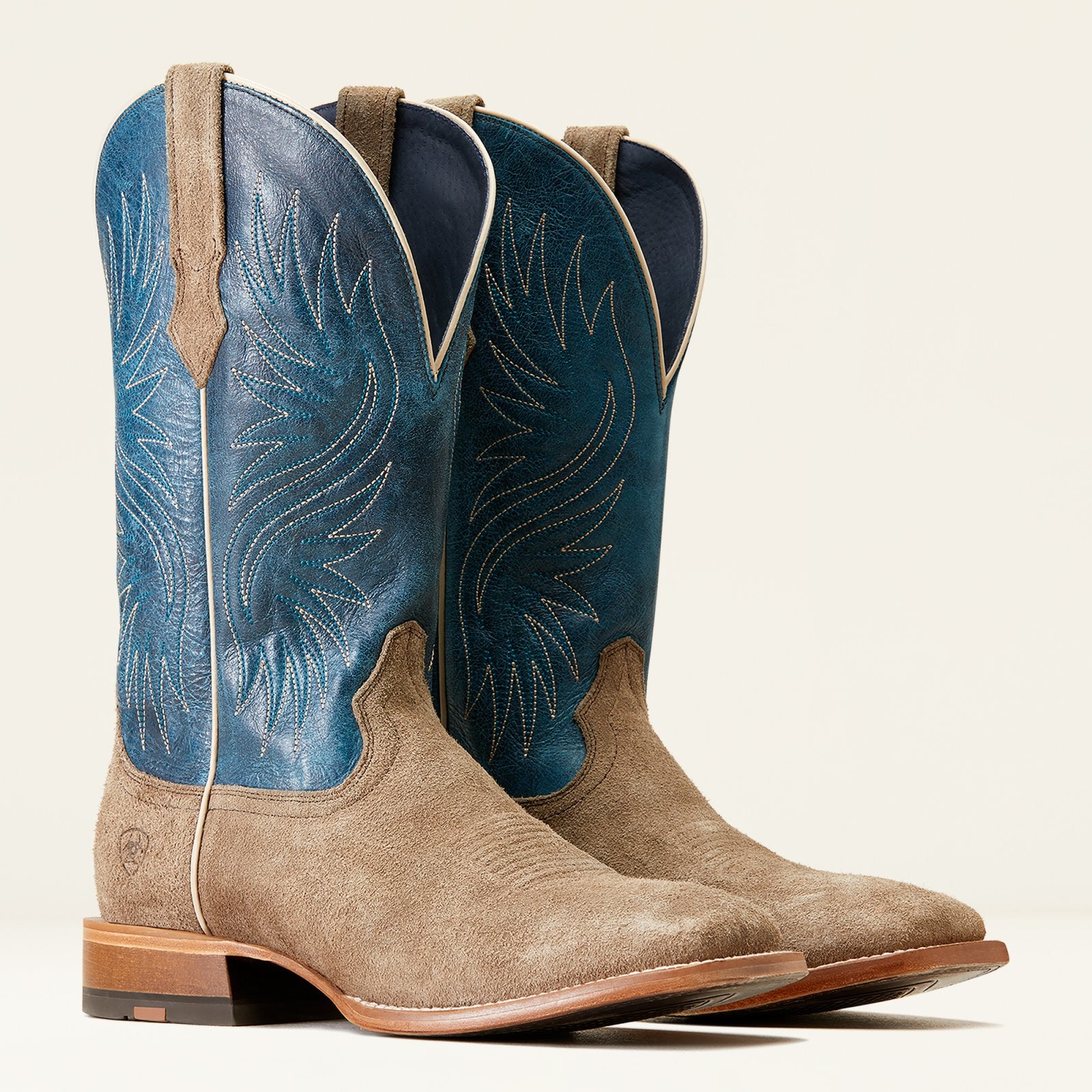 Circuit Rockbridge Western Boot from Ariat Color: Smokey Roughout/Ocean Blue Featuring the TEK step technology that provides heel-to-toe rebound and cushioning for maximum comfort and all-day wear fatigue Full grain leather foot and upper Two row stitch pattern leather lined Double stitch welt Hand nailed color stained veg-tan leather outsole ATS insole Wide Square 13" shaft