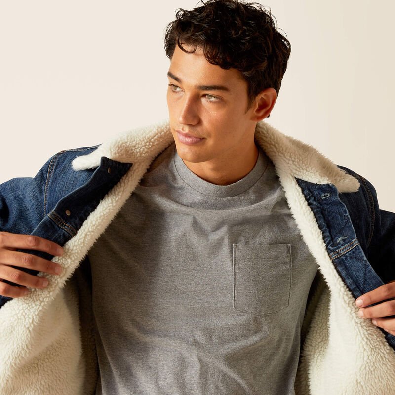 A tried and true western icon, the Ariat way. This Sherpa fleece-lined denim jacket pairs the soft warmth you expect with the convenience of multiple pockets for a comfortable everyday staple you'll reach for again and again.