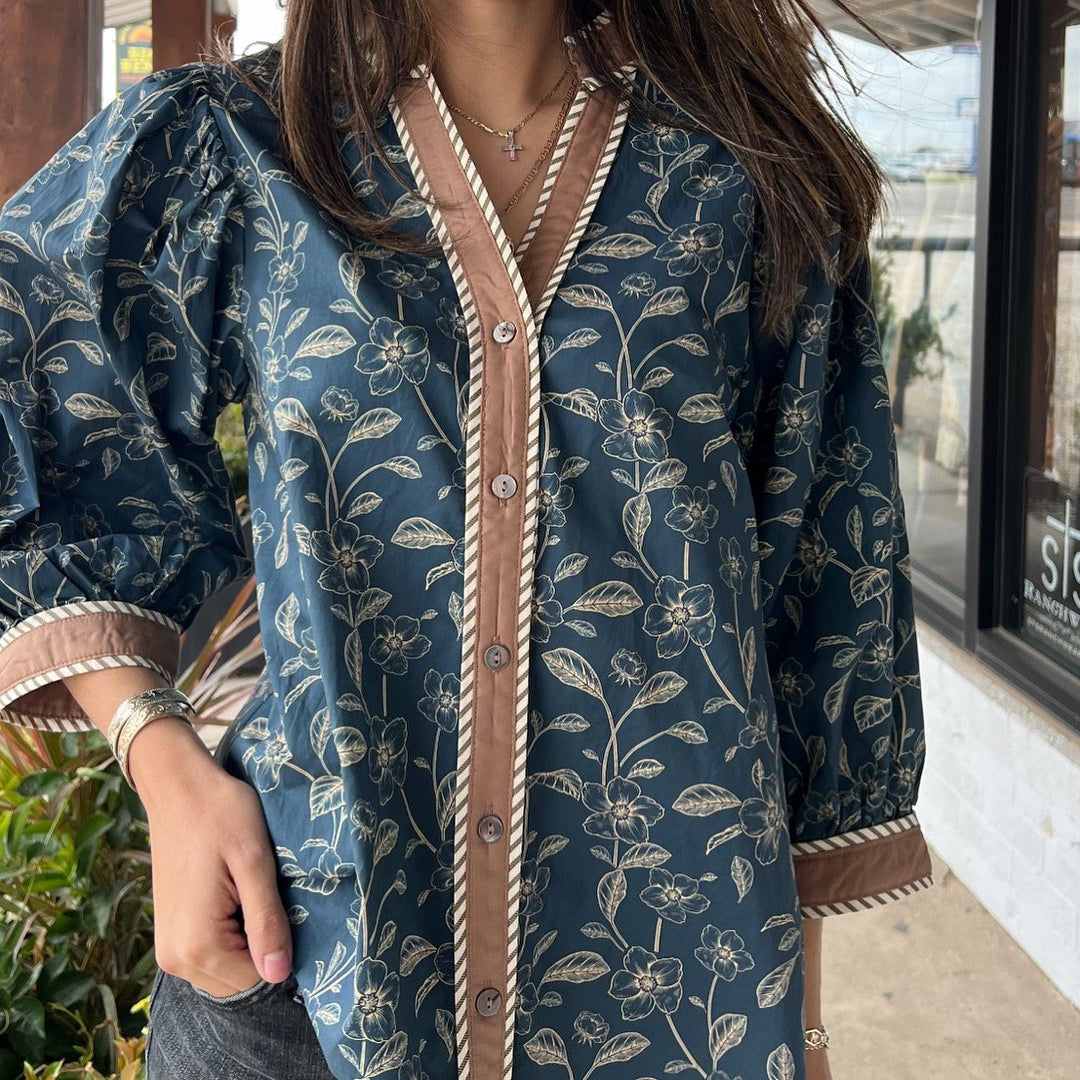 Embroidered Botanical 3/4 Sleeve Top