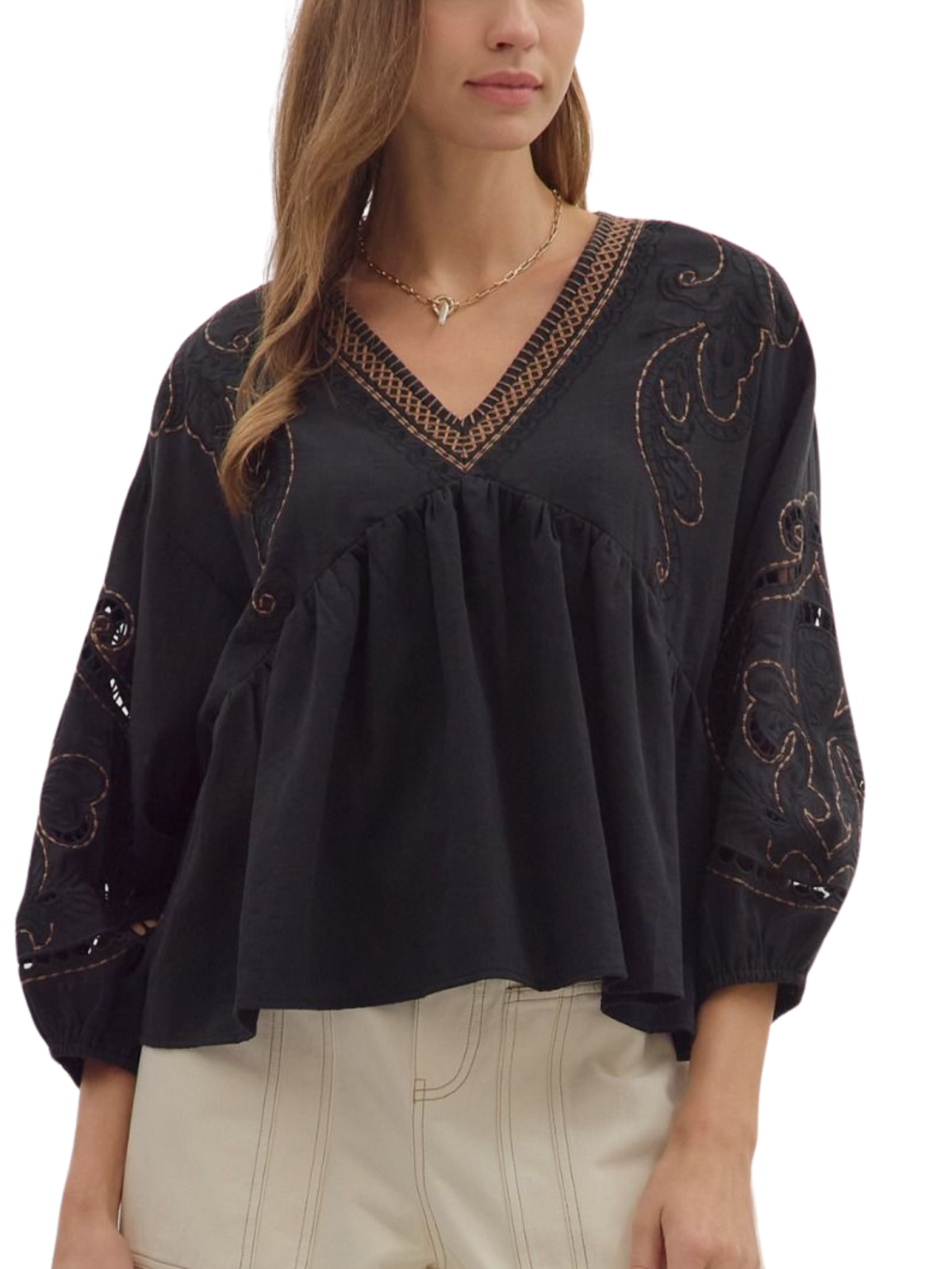 Embroidered Cut Out Sleeve Top