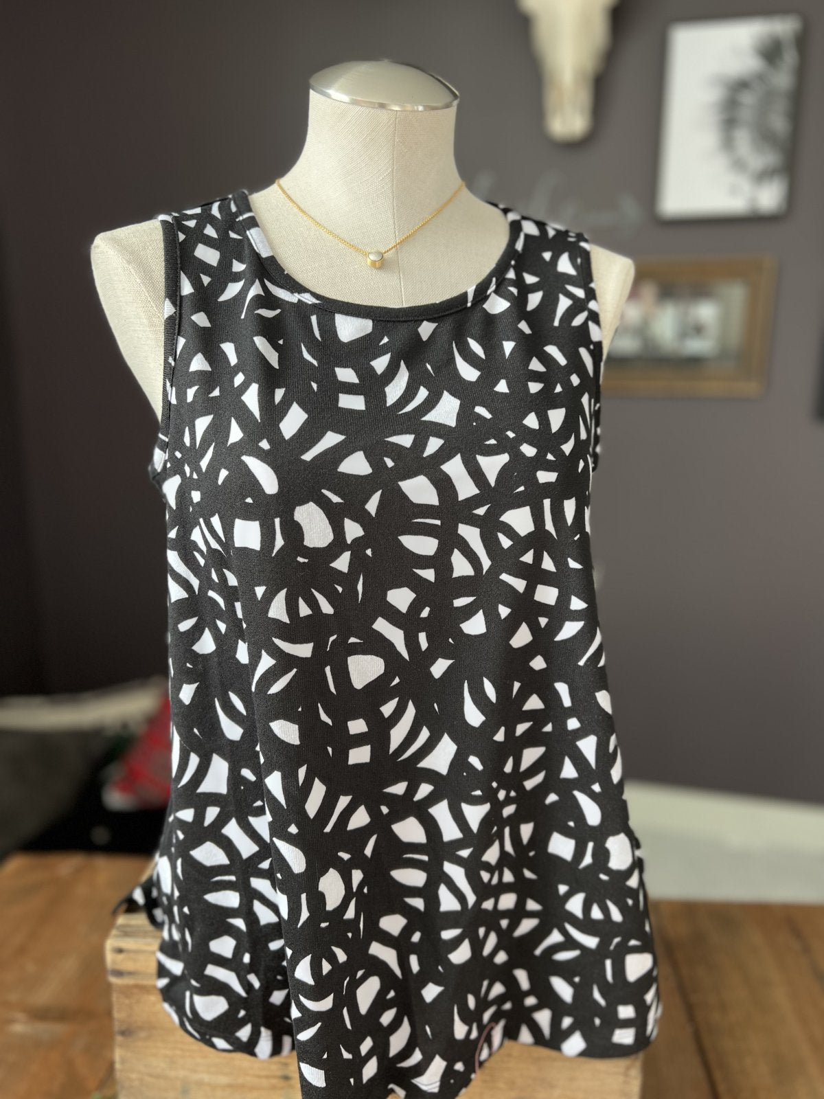 Classy print that layers well or can be worn all its self...pair with your favorite white or black ankle pant