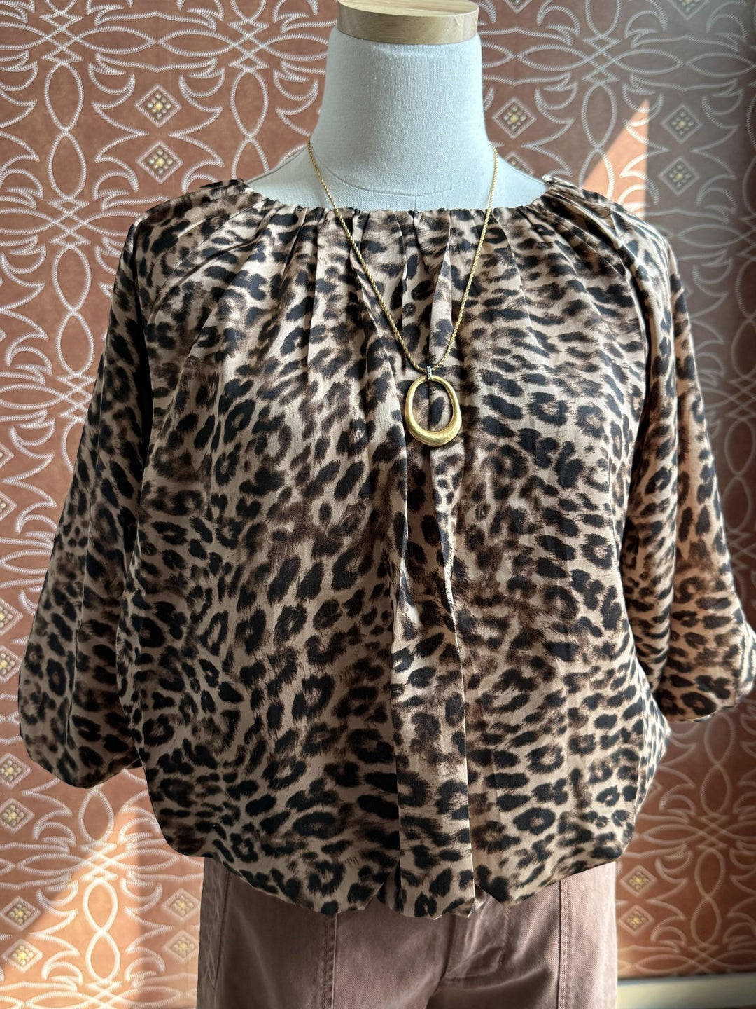3/4 Sleeve Contrast Ruffle Trimmed Top