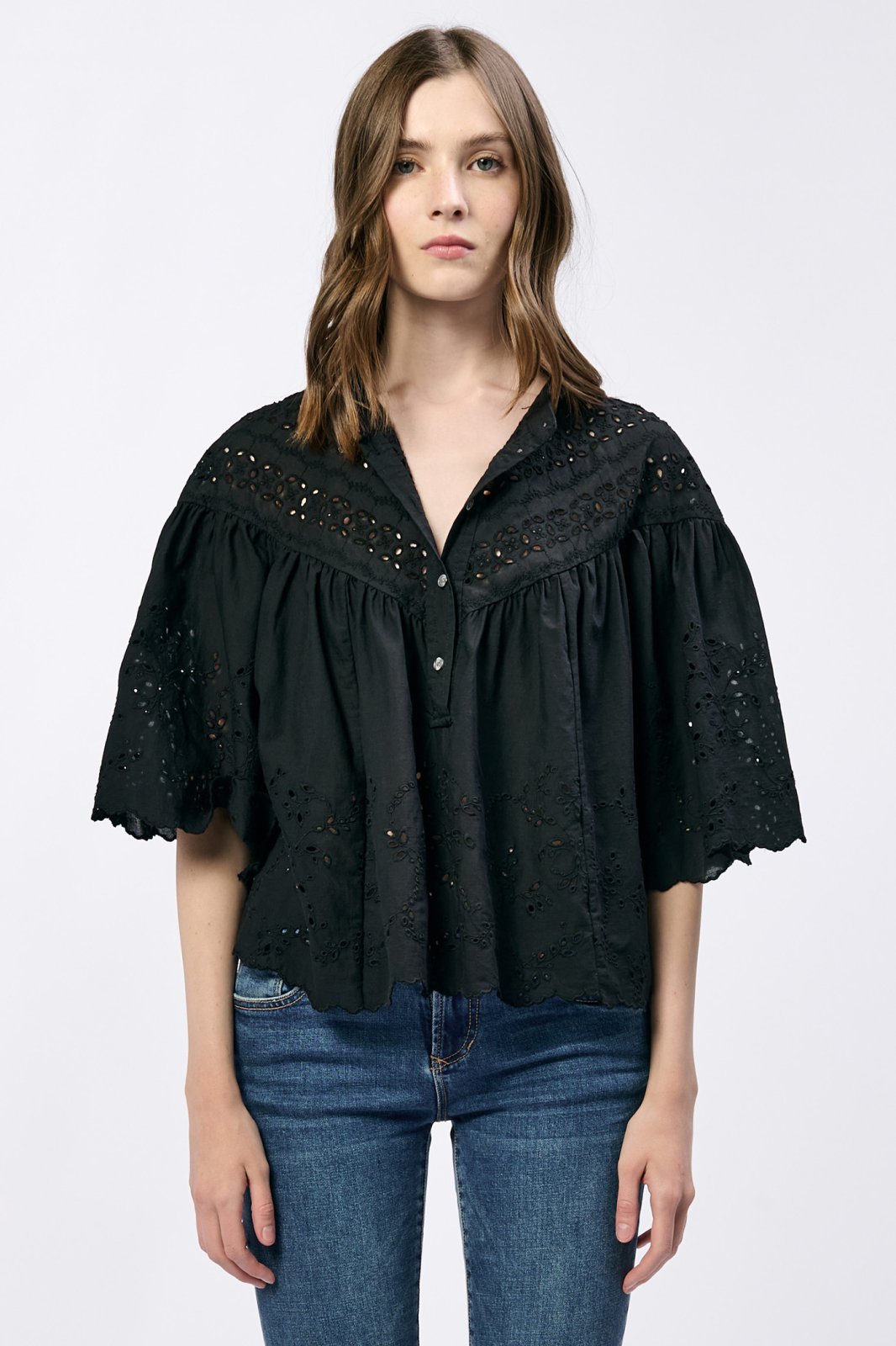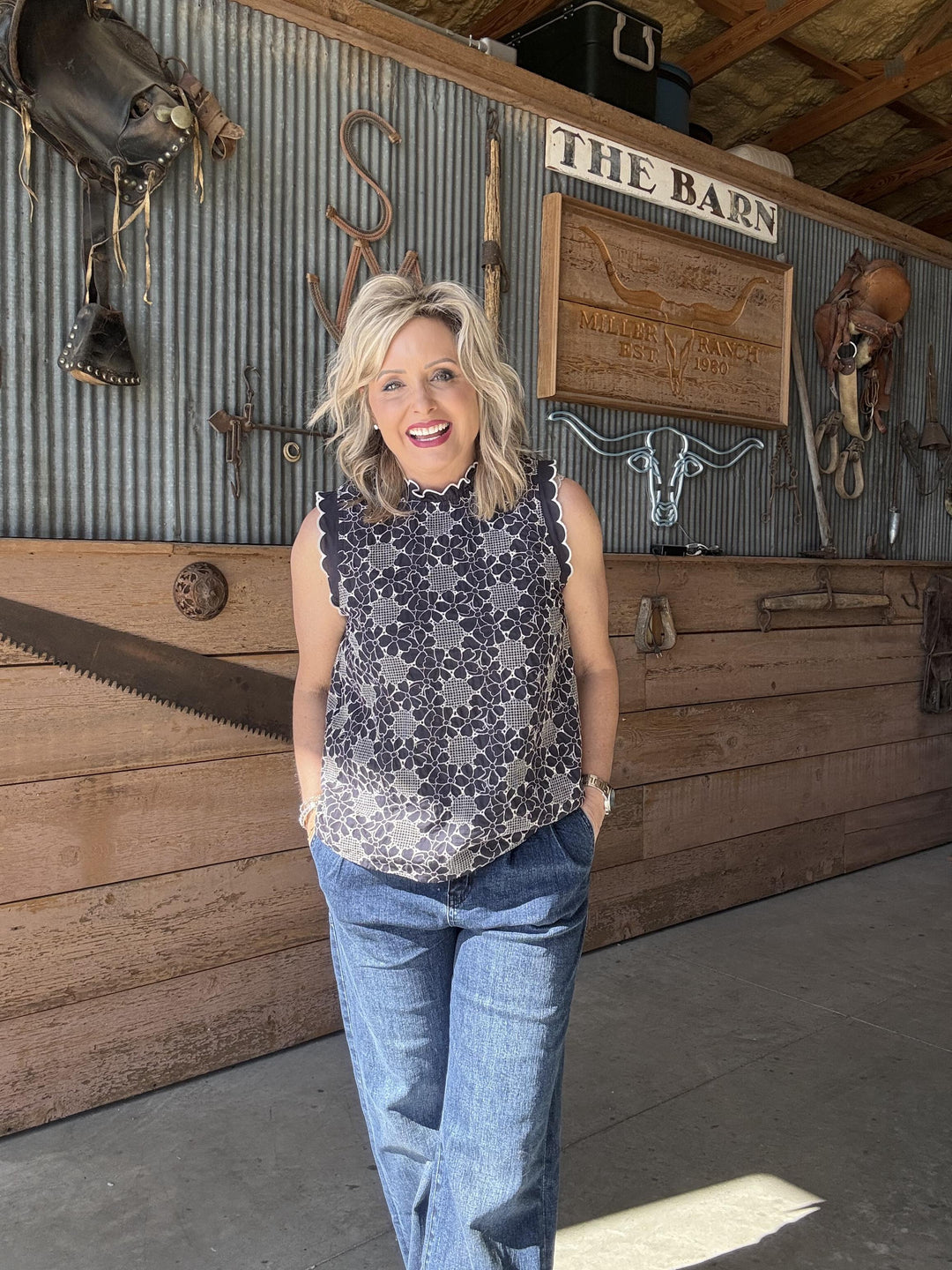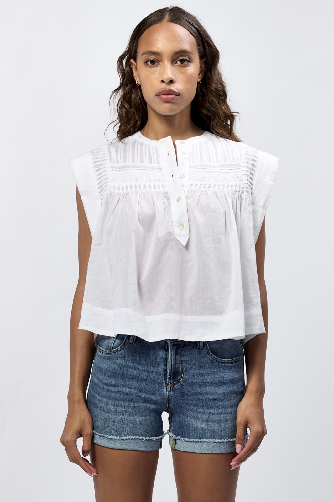 Linen Blend All Over Print Pop Over Top from Ivy Jane