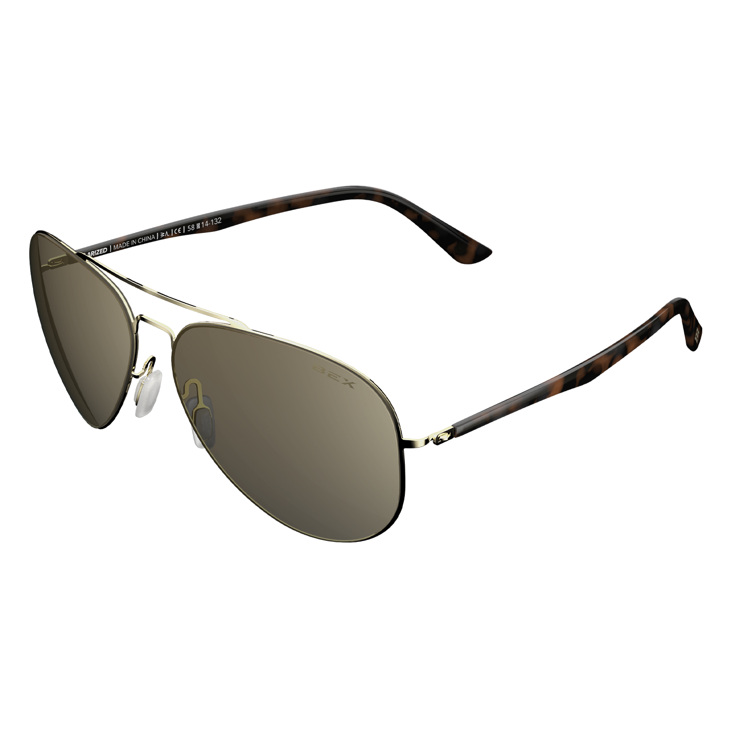 Cole from Bex Color: Gold/Brown Shiny Gold flexible stainless steel frame with CP tortoise brown temple inserts. Vibrant brown tinted lens with a Gold Glaze.