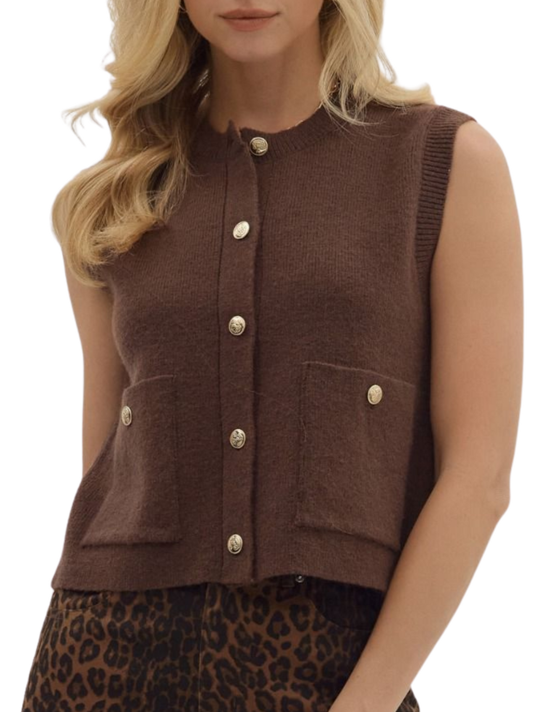 Button Front Sweater Vest