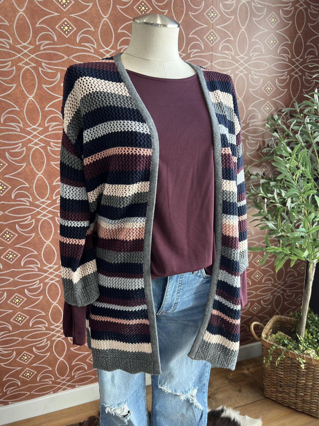 3/4 Sleeve Open Weave Cardigan from Multiples
